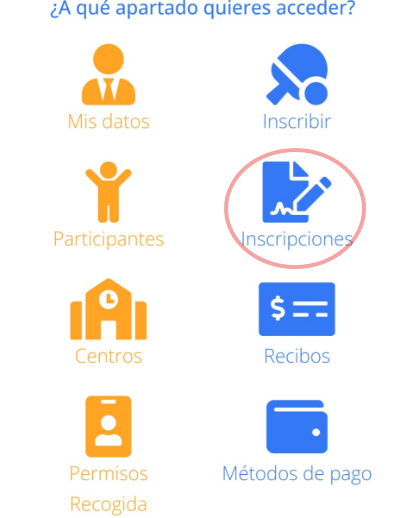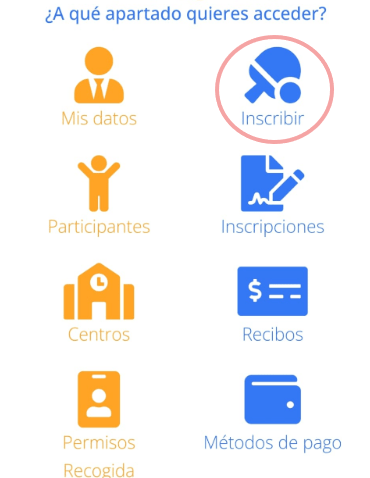 Accede a Extraescolares desde la app y después, selecciona la opción inscribir: