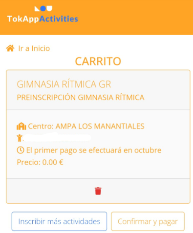 El último paso es añadir la actividad al carrito, confirmar y pagar la actividad.